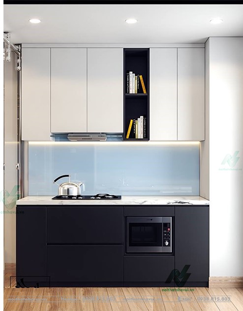 Tủ Bếp chữ I cũng là một thiết kế hay và tiện lợi trong việc sử dụng việc chia tách ra 2 phần một là phần dùng cho việc rửa và 1 phần dùng cho việc nấu nướng