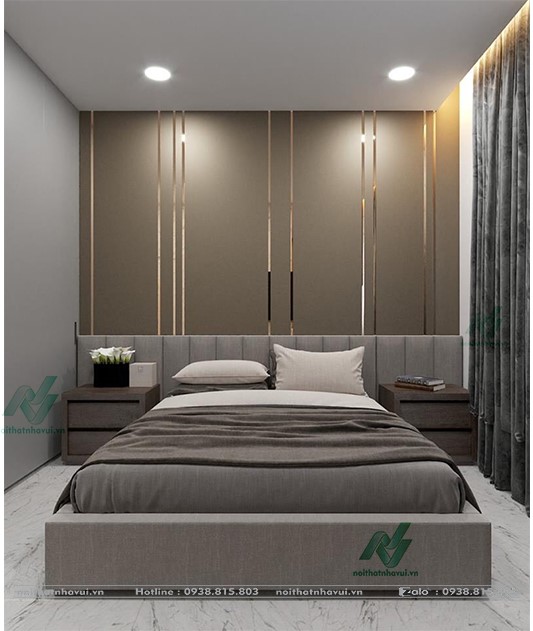 Giường ngủ và vách đầu giường được trang trí bằng vải cao cấp