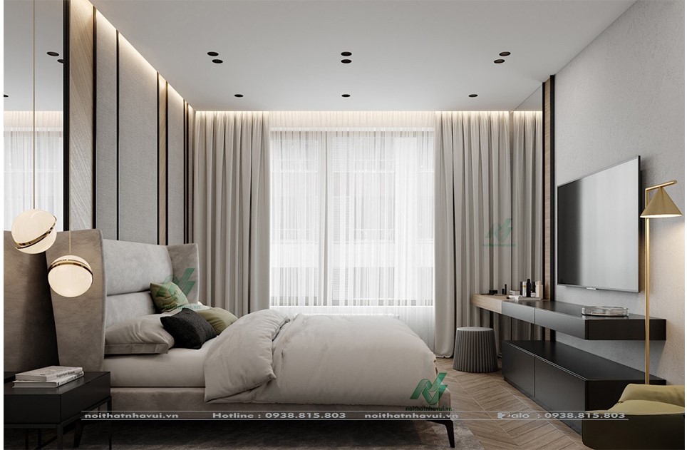 Nên việc thiết kế nội thất phòng ngủ Master làm sao mang tới một không gian thoải mái và tiện nghi nhất. Vì vậy, phòng ngủ master luôn được ưu ái hơn về diện tích không gian cũng như là vị trí và góc view đẹp nhất trong ngôi nhà để làm nơi thư giãn tuyệt đối.