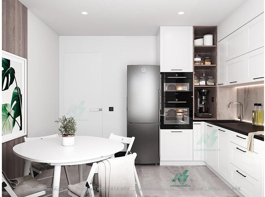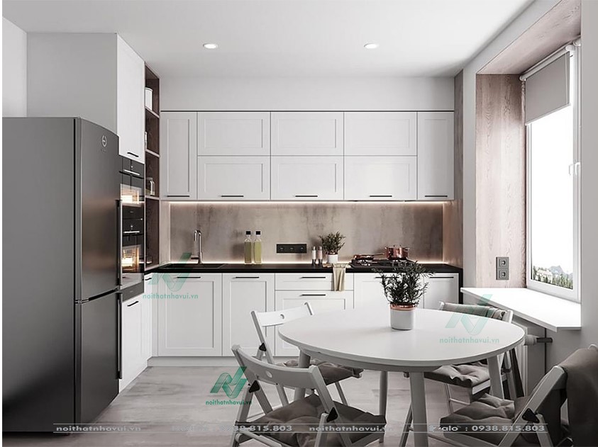 Tủ Bếp Tân Cổ Điển với gam màu trắng